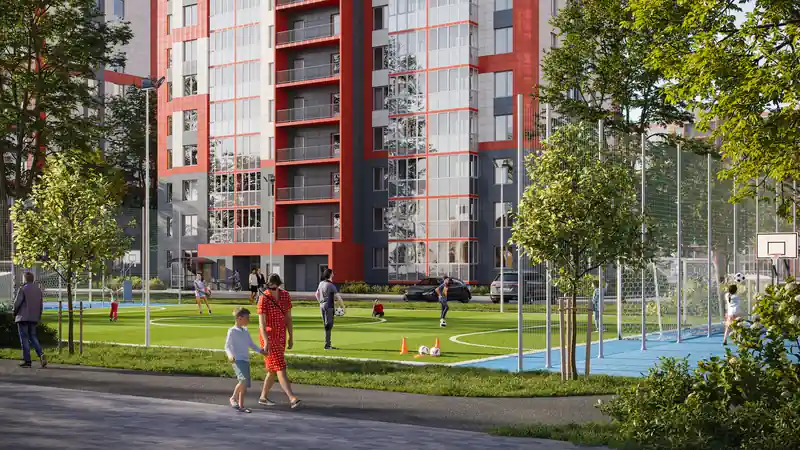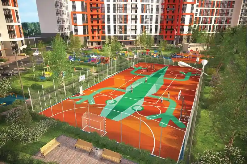 Жилой комплекс также предлагает различные спортивные и игровые площадки, где маленькие жители могут активно проводить время. Для автомобилистов предусмотрены паркинги. В шаговой доступности находятся кафе и магазины, что помогает жителям экономить время на повседневных покупках.