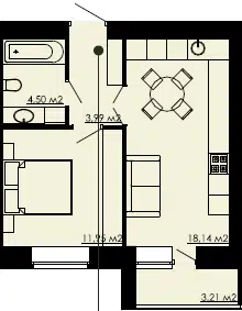 1-комнатная, 41.79 м²